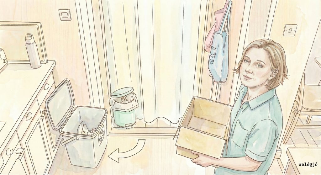 Ha a vegyes kuka van a mosogató alatt (kéznél), a szelektív pedig a kamrában (távol), akkor a fáradt agyad szinte garantáltan a könnyebb utat választja – és a joghurtos pohár a rossz helyre kerül.