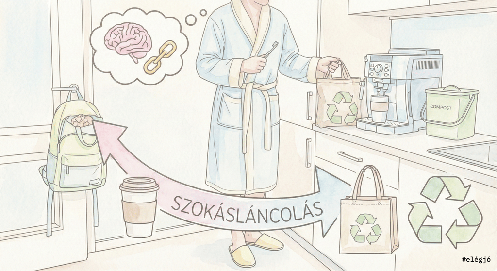A fenntarthatóság gyakran azért bukik el a hétköznapokban, mert plusz mentális terhet jelent. Döntéseket kell hozni, észben kell tartani dolgokat. Itt jön a képbe a szokásláncolás (habit stacking), az egyik leghatékonyabb viselkedéspszichológiai módszer, amivel a környezettudatosságot robotpilóta-üzemmódba kapcsolhatod.